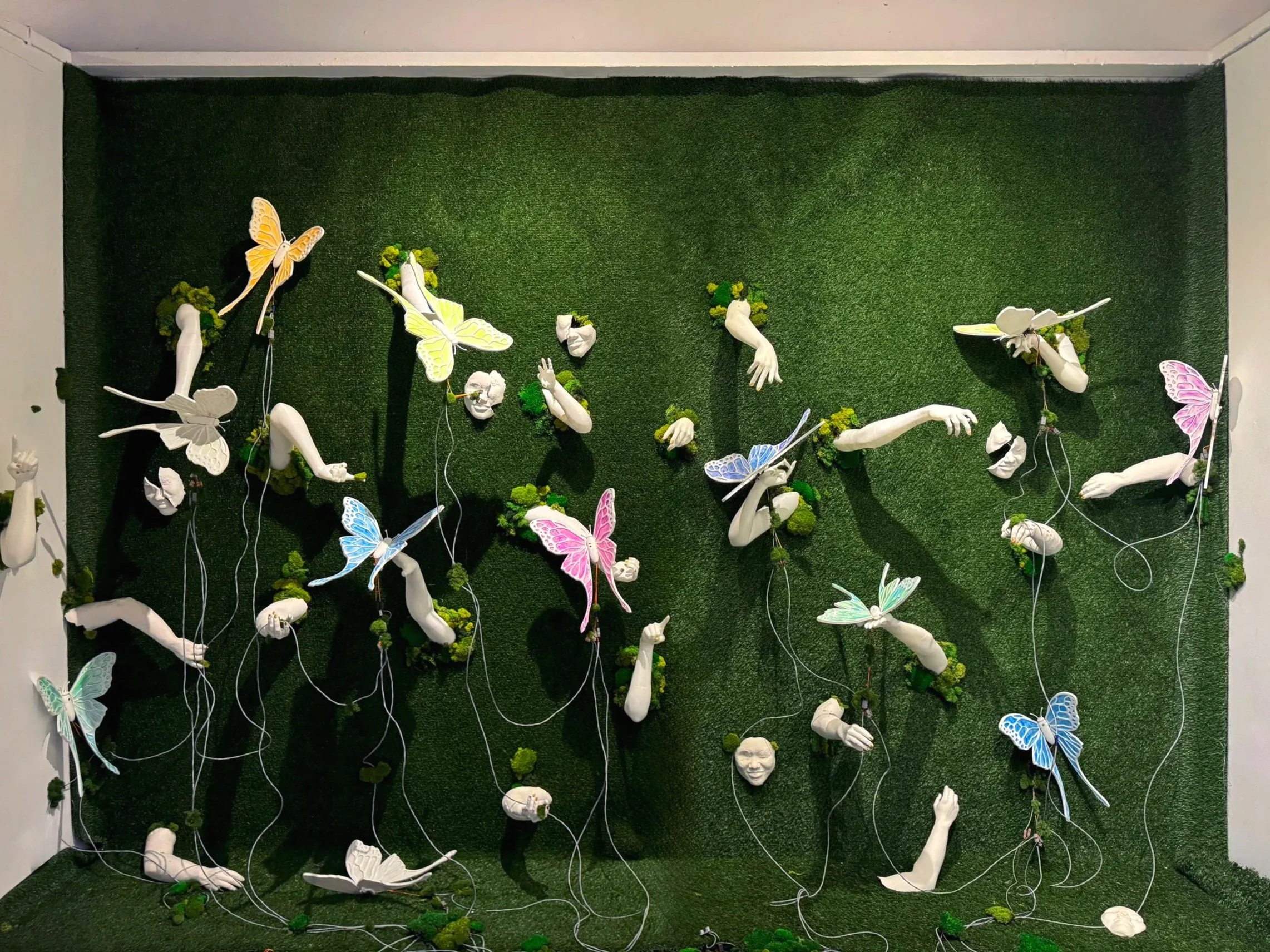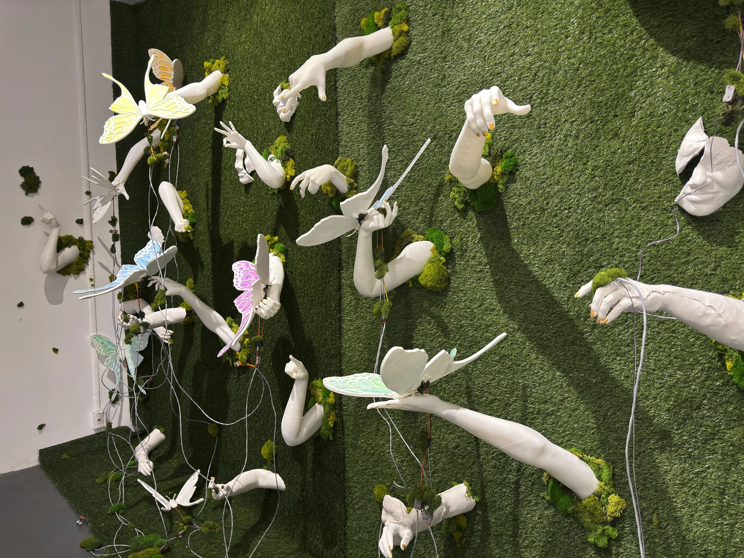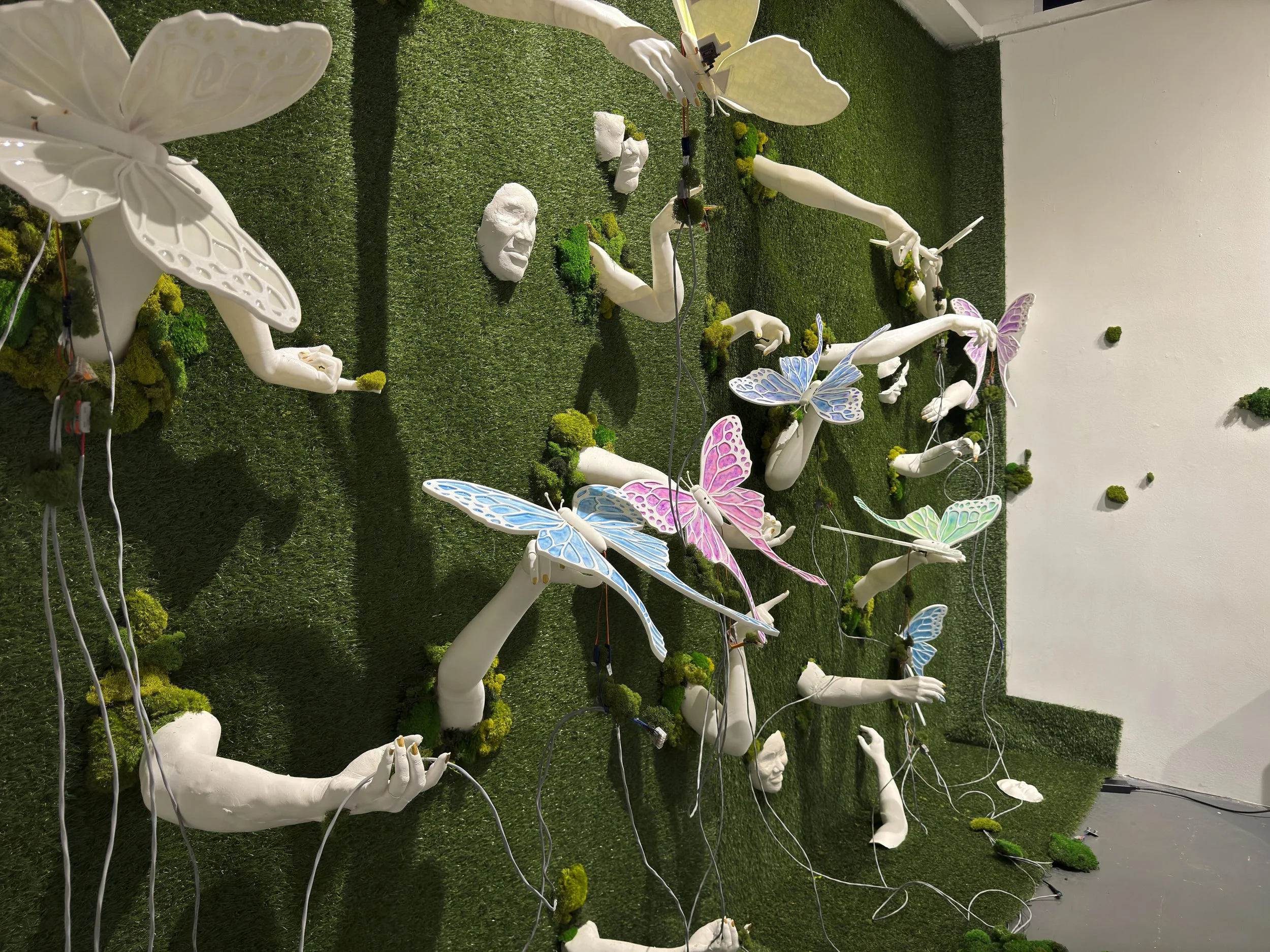 The work also reflects the evolving relationship between humans and technology. Rather than replacing humanity, technology continues alongside us, even beyond death. Moss symbolizes resilience and quiet growth, suggesting how technology can become a natural part of life.